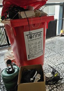 Beim E-Waste-Race der Hamburger Organisation „Das-macht-Schule“ treten bundesweit Schulen gegeneinander an beim Sammeln von Elektroschrott.  Punkten kann man in diesem Rennen, indem man alte, nicht mehr genutzte Elektrogeräte an BonnOrange (Wertstoffhof) abgibt, damit sie fachgerecht recycelt werden, oder indem man noch reparierbare Geräte zum Repair Cafe bringt oder funktionierende aber nicht mehr benötigte Geräte weitergibt, zum Beispiel über eine Kleinanzeige…. Oder auch, indem man über das Elektroschrott-Sammeln und das E-Waste-Race informiert.