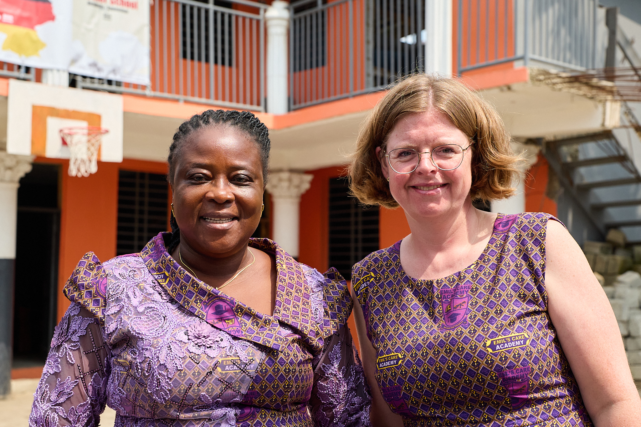 Das hieß auch, dass wir eine eigene Schuluniform bekamen, die in Ghana nicht nur von den Schüler*innen sondern auch von den Lehrkräften getragen wird. Neben mir auf dem Foto ist die Gründerin und organisatorische Leiterin der Schule: Emelia Tenkorang. Sie wird von Schüler*innen und Lehrkräften gleichermaßen liebevoll Mummy genannt und ist gleichzeitig das Oberhaupt der Schule und Mädchen für alles. Sie kümmert sich um Disziplinarfälle genauso wie um die Kinder, die krank sind oder etwas verloren haben. Sie hat einerseits die ganze Schule im Blick, hilft andererseits aber auch mal in der Küche, wenn das notwendig ist.
